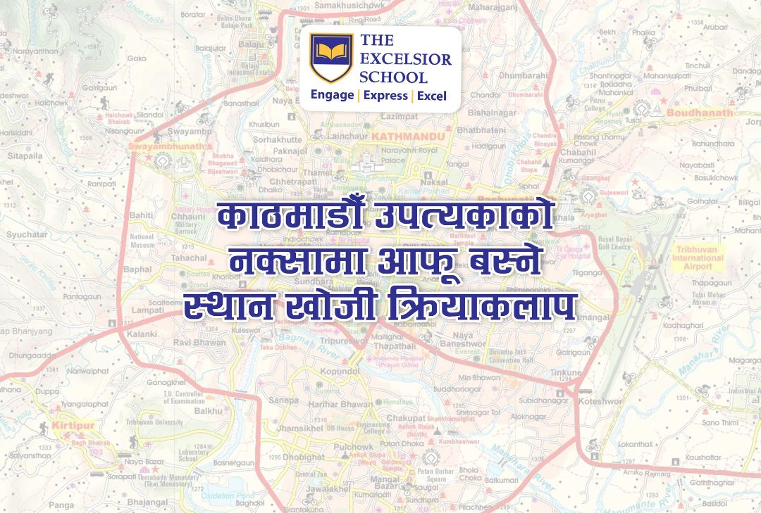 काठमाडौं उपत्यकाको नक्सामा आफू बस्ने स्थान खोजी क्रियाकलाप । २०८०